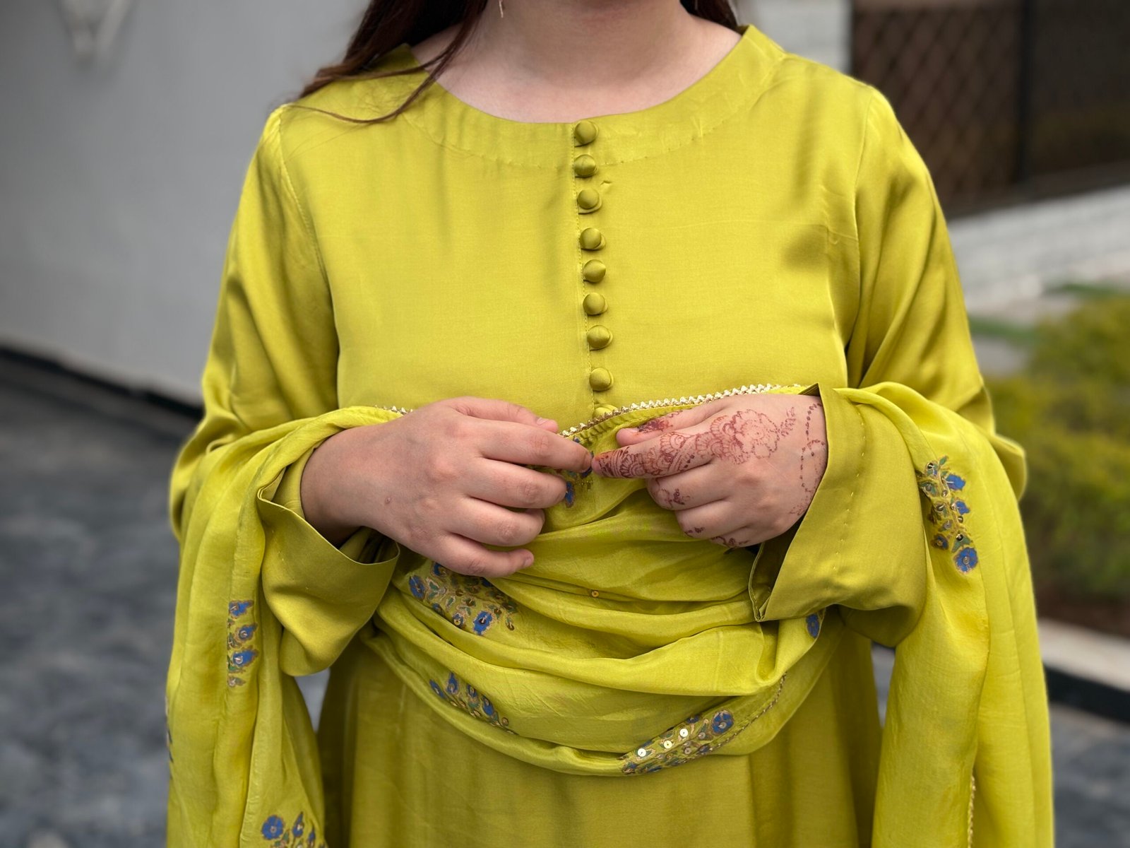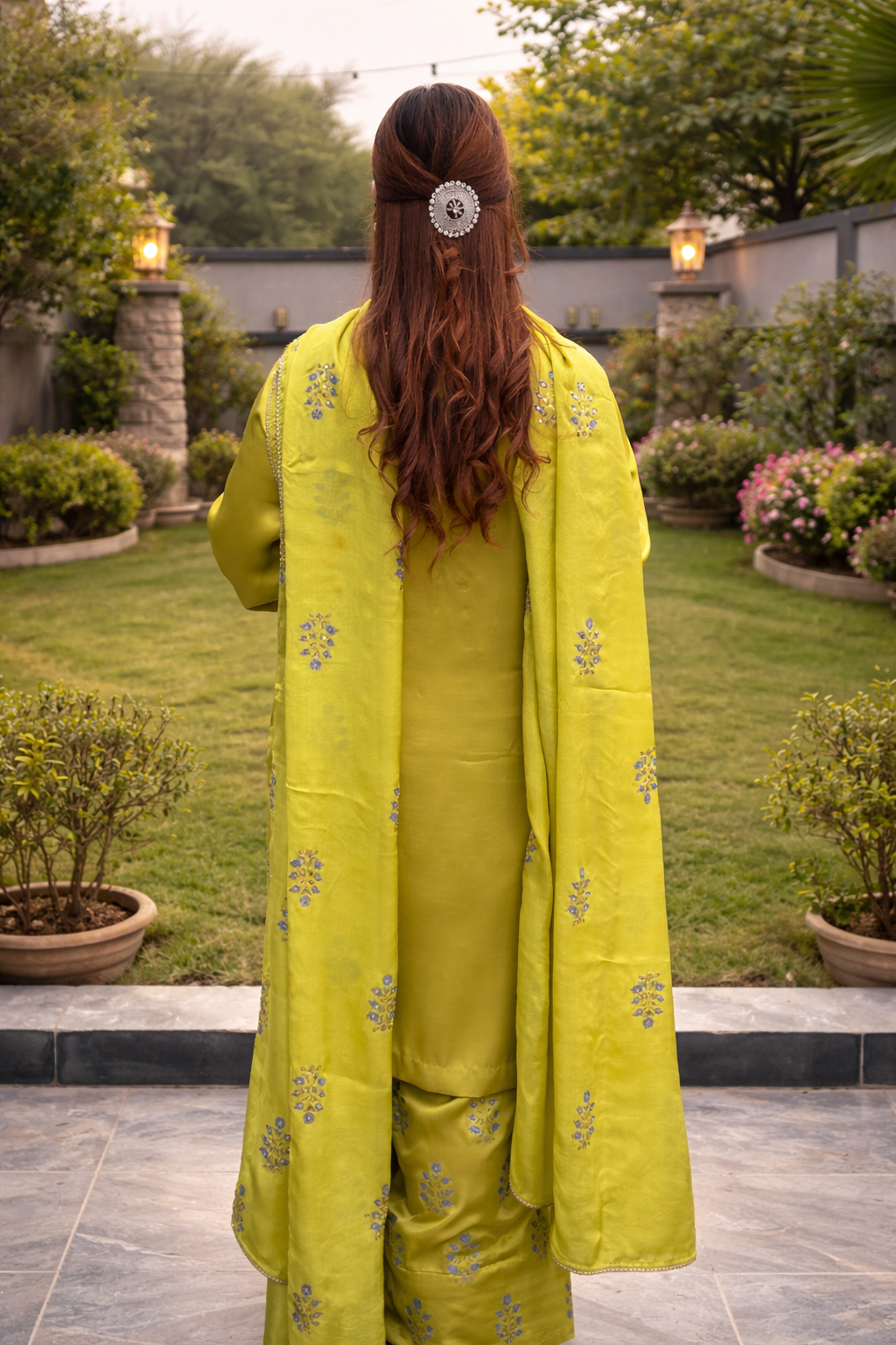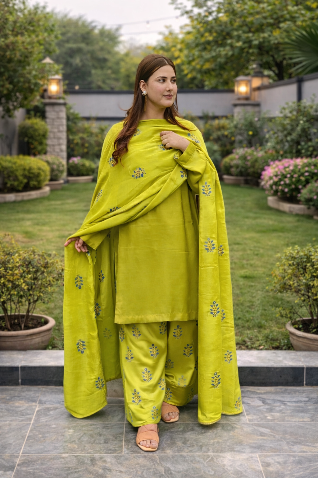 Step into refreshing elegance with this vibrant lime green silk ensemble, designed to blend traditional craftsmanship with a graceful contemporary silhouette. Featuring delicate hand-block printing and subtle embellishments, this outfit offers a perfect balance of comfort and festive charm.