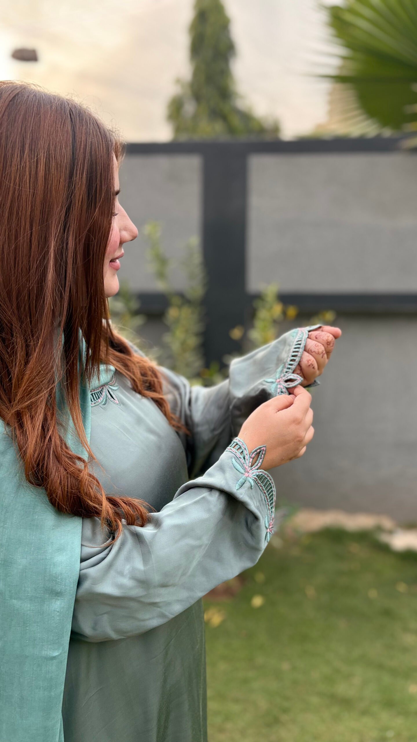 Sage Green Cutwork Pure Silk 3-Piece Suit