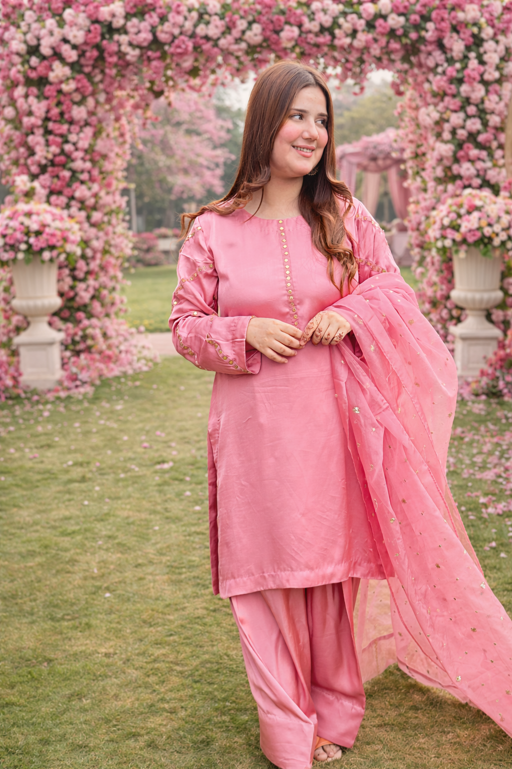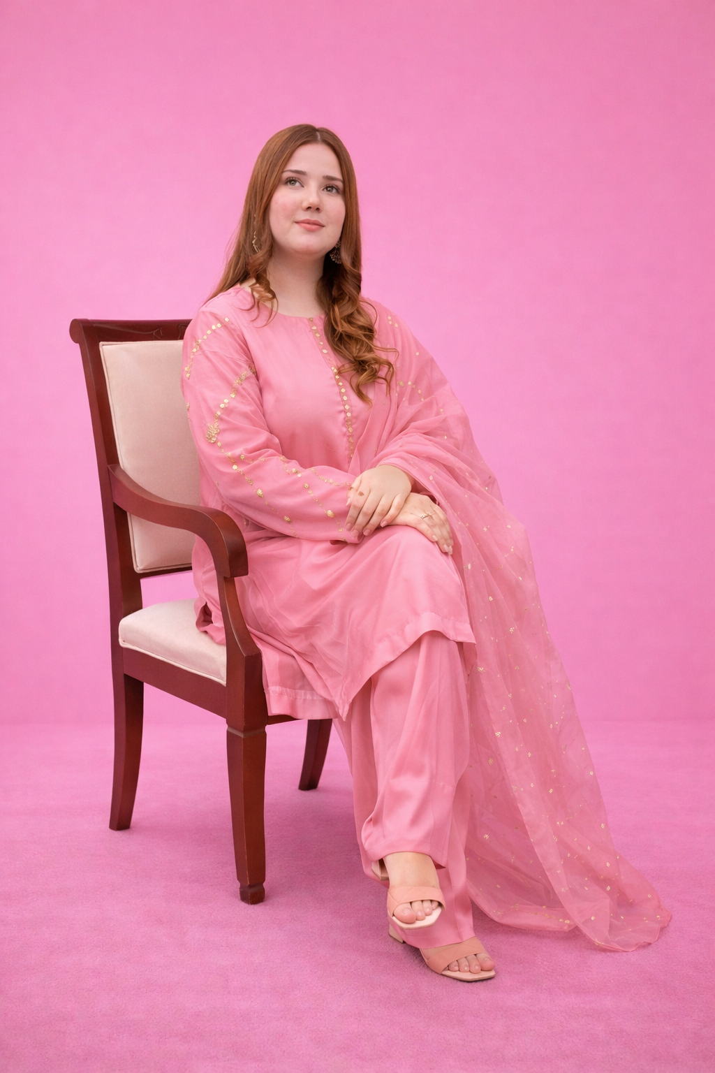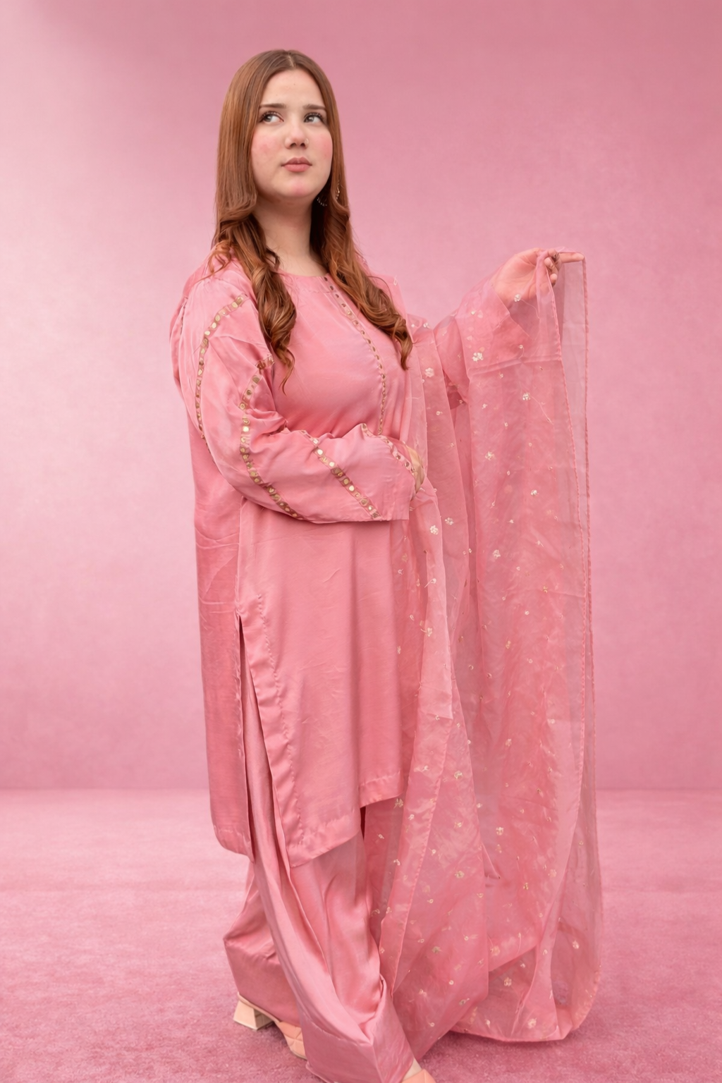 Step into soft elegance with this beautifully crafted pink ensemble, designed for women who appreciate subtle detailing and a graceful traditional look for festive gatherings, family events, and elegant daytime occasions.